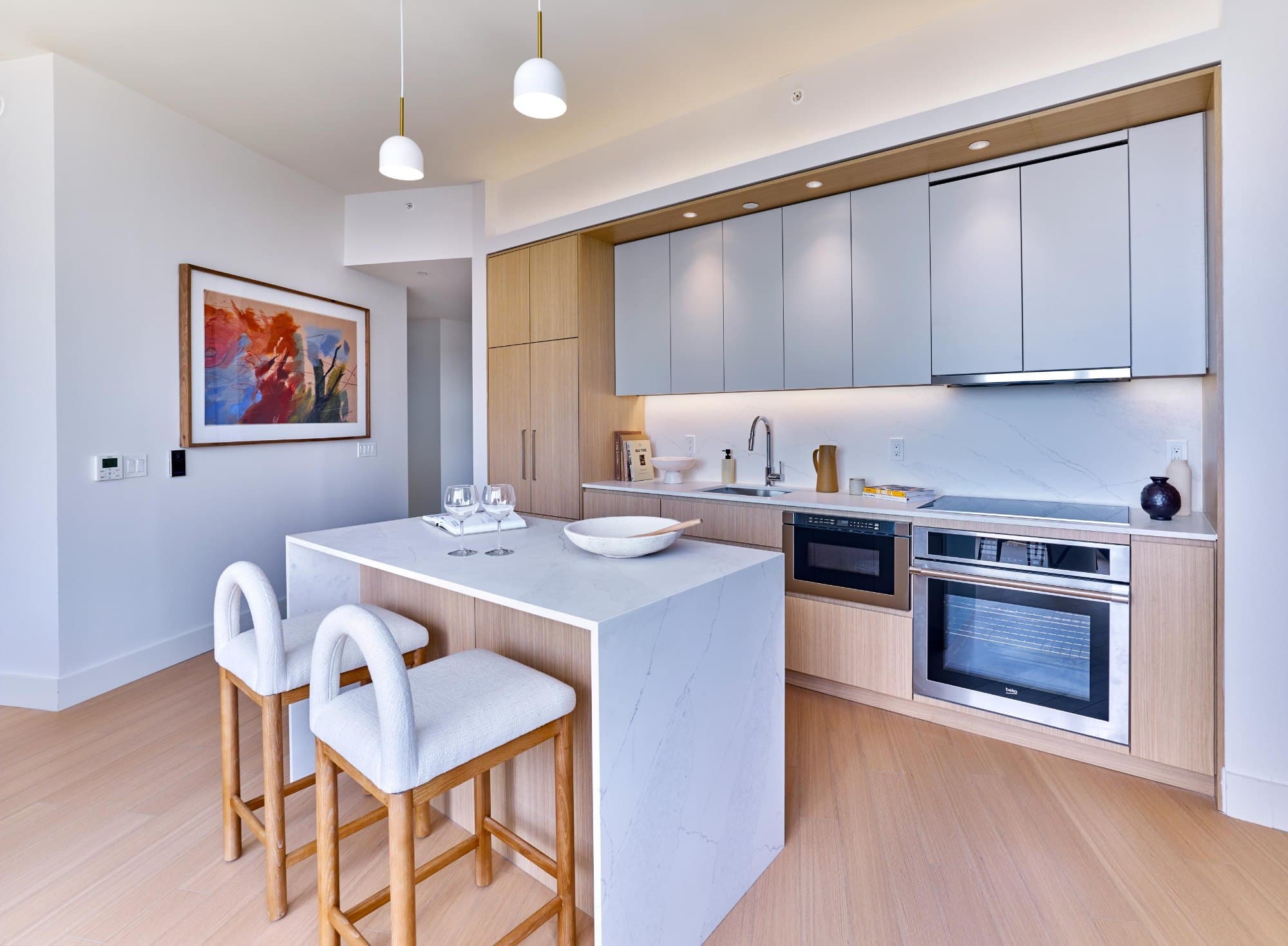 The residences at The Alary raise the bar on rental living with generous open interiors and condominium-level finishes including Beko and Fisher & Paykel kitchen appliances, frameless glass shower doors, and custom-built closets. Enjoy floor-to-ceiling windows, smart home access, and skyline views in every home.